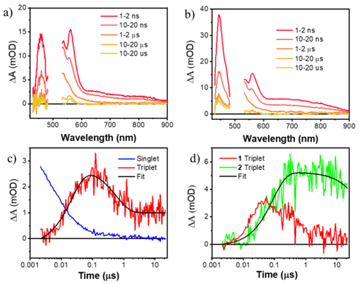 图4. 共晶及TTA体系纳秒瞬态吸收光谱。